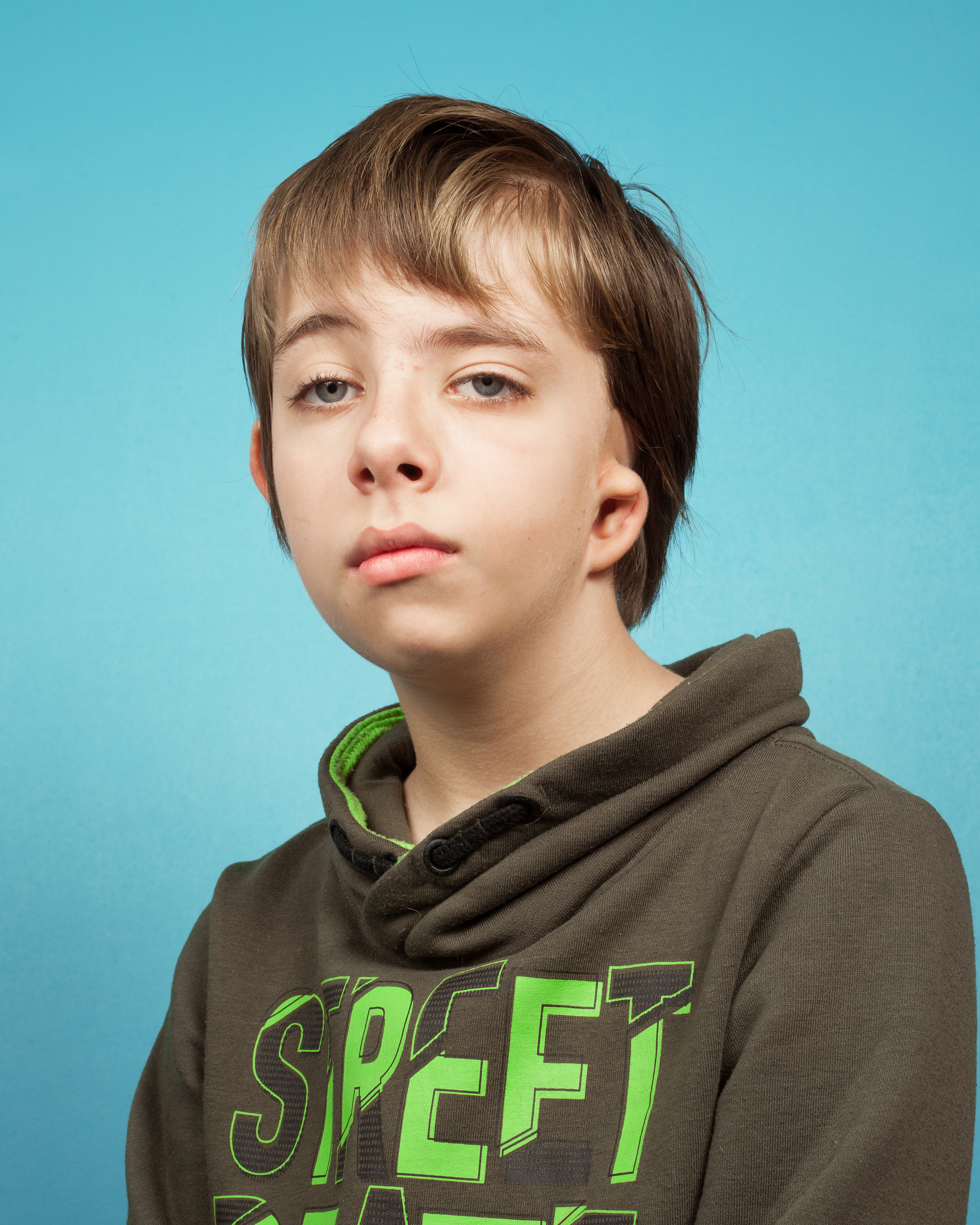 De face, de trois-quarts, de profil, le visage a différentes facettes. Seul le « punctum » comme l’explique Roland Barthes, fait que l’on se souviendra de ce visage. Le punctum est un détail qui attire l’attention. Je réalise une série de portraits d’enfants, des enfants aux apparences insolites et d’autres, aux traits quelconques. En les mettant côte à côte, je souhaite montrer leur ressemblance, mais aussi souligner ce détail qui rend leur visage inoubliable, leur punctum. A l’horizon de cette série, j’aspire à ce que le public prenne conscience qu’une métamorphose peut toucher n’importe qui et survenir n’importe quand. Elle affecte toutes les catégories sociales, tous les pays du globe. Tous, doivent vivre avec et ne devraient pas se sentir gênés par le poids des regards. La différence physique est encore un problème dans notre société. Cette série photographique souhaite amener le regard du spectateur à s’éloigner des canons de beauté et à envisager une altérité possible.
