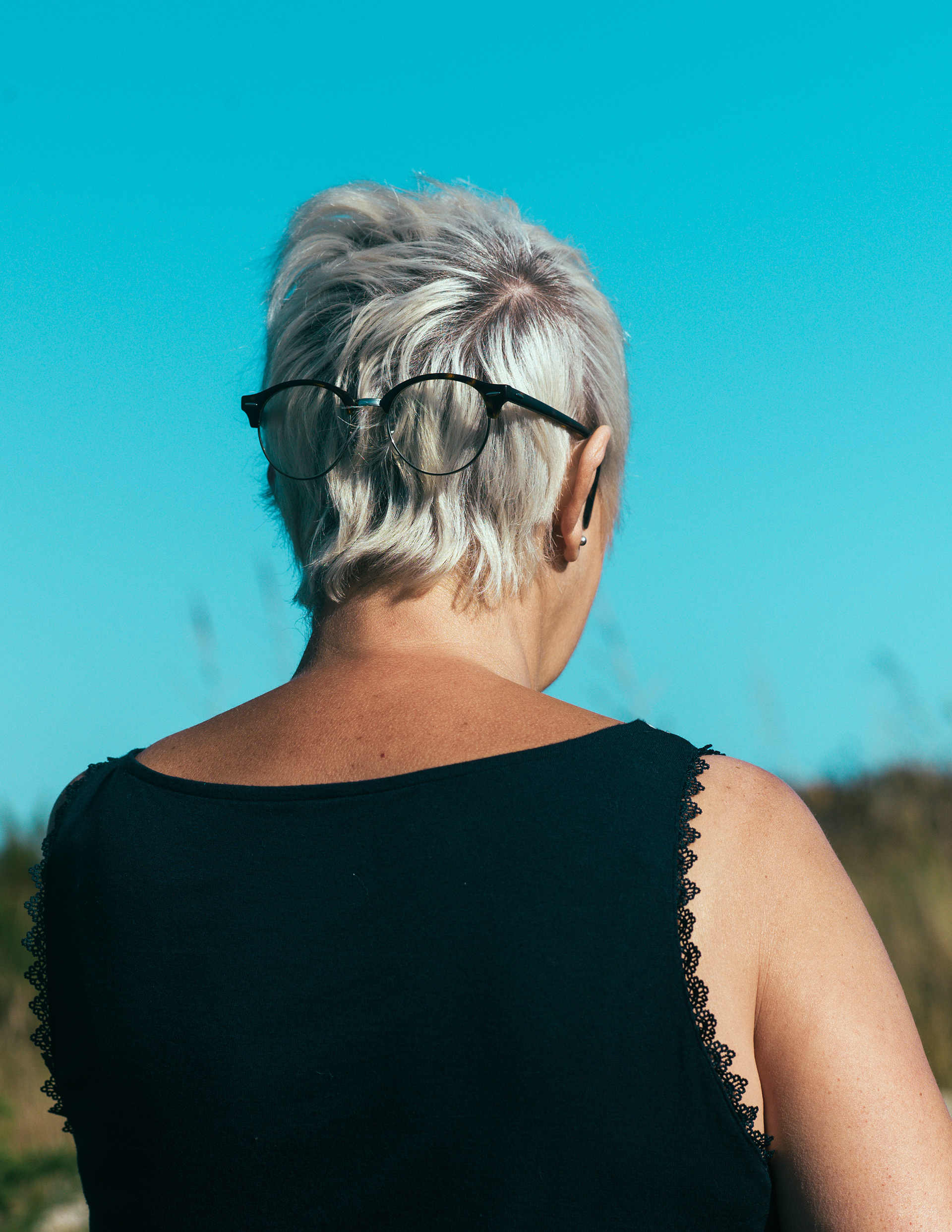 Lorsque je me plonge dans mes albums photos d’enfance, les années, n m’y plongeant, je cherche à me créer des souvenirs de peur d’oublier. A chaque vacances d’été nous avions toujours le droit à la photo de famille devant un beau paysage et la photo devant un monument, une sculpture. Cette année, je retourne sur mes albums personnels, commencé à l’âge adulte. En les feuilletant , j’y trouve une certaine similitude, les années se ressemblent, les lieux changent mais mon regard reste le même, toujours à la recherche d’un reflet, d’un trou où y faire un cliché, d’un nuage ou d’un arbre surprenant ; c’est gens pris de dos ou à la sauvette sans que l’on ne me voit. Cette série est mon été où plutôt mes étés ; créant une forme photographique en utilisant une structure narrative éclatée, nourri par mes souvenirs. Une sorte de logique inconsciente qui se répète année après année, sans que l’on ne le sache, à part quand on veux y trouver quelque chose. En avançant à tâtons , une sorte de Summer in progress.